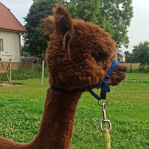 Lemon, piękna, postawna alpaka o miłym w dotyku runie. Pięknie wybarwiona. Znająca doskonale swoją wartość, najważniejsza w stadzie. Grzeczna i bardzo ciekawska. Główny uczestnik wszelkiego rodzaju targów i wystaw. Odporna na stresu i tłum zwiedzających. Urodzony przywódca stada. W pełni wartościowa, nie wykastrowana alpaka.